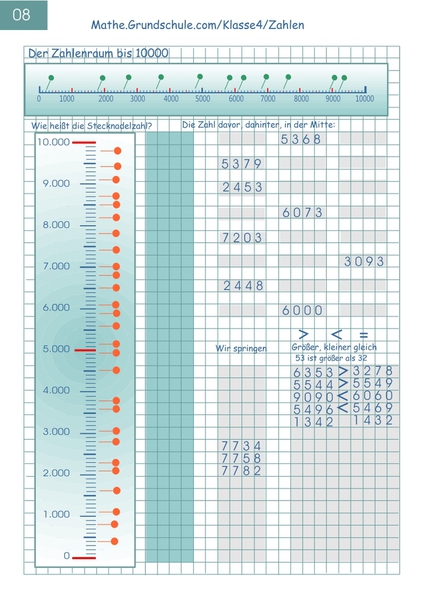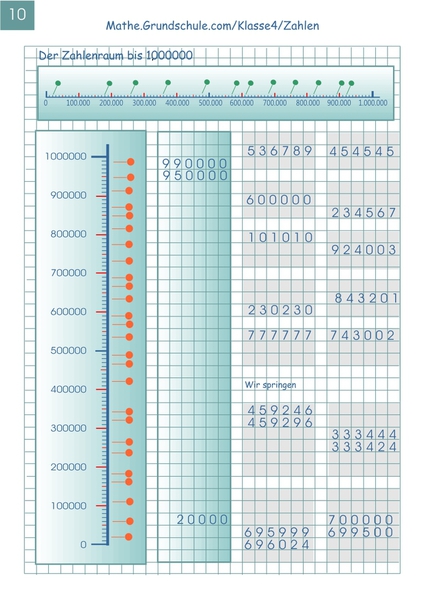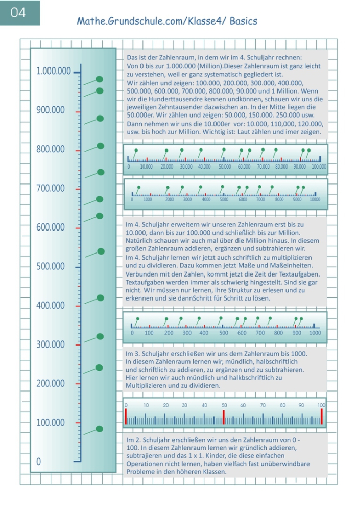Der Block 'Der Zahlenraum von 0 bis zur Million' ist überarbeitet. Ihr könnt schon mal darangehen, euch mit den Zahlen vertraut zu machen.